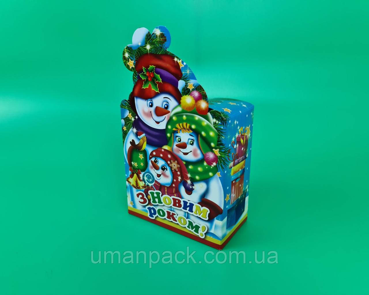 Новорічна подарункова картонна упаковка для цукерок (600 гм) Сім'я сніговиків No210с (1 шт.)