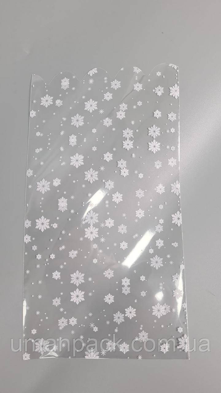 Пакет із малюнком для пакування подарунків (15*30) No380 (7) (ажурний) "Сніжинки" (100 шт.)